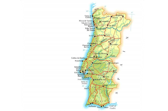 【简 况】位于欧洲伊比利亚半岛的西南部。东、北连接西班牙,西、南濒临大西洋。海岸线长832公里。地形北高南低,多为山地和丘陵。北部属海洋性温带阔叶林气候,南部属亚热带地中海式气候。